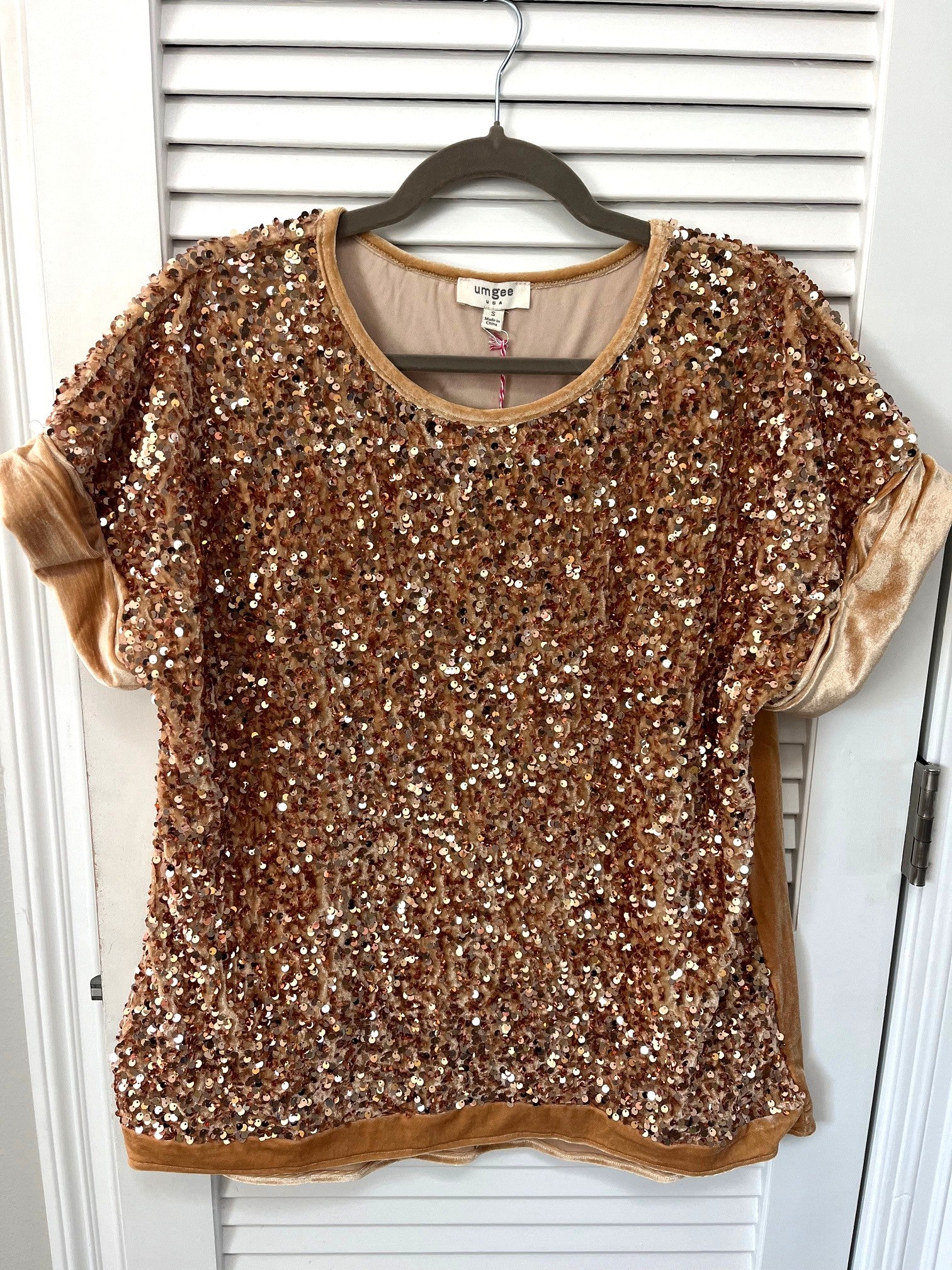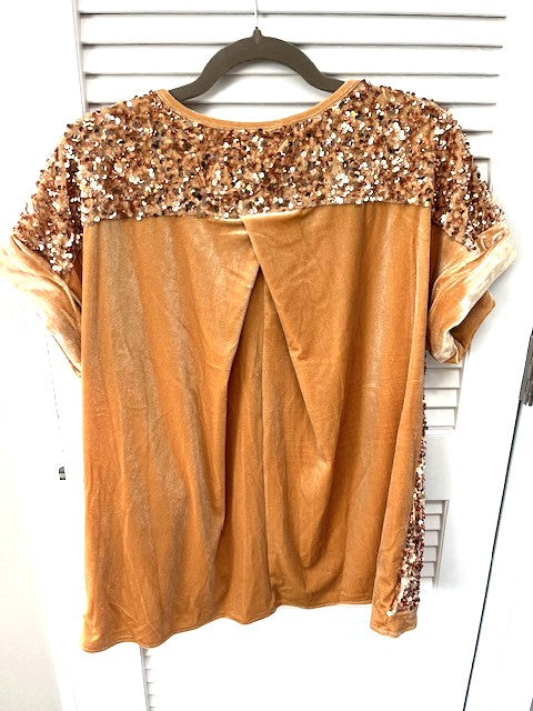 Gold Sequin & Velvet Top